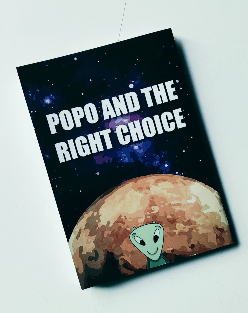 I made a cover page for my zine and titled it “Popo and the right choice”.