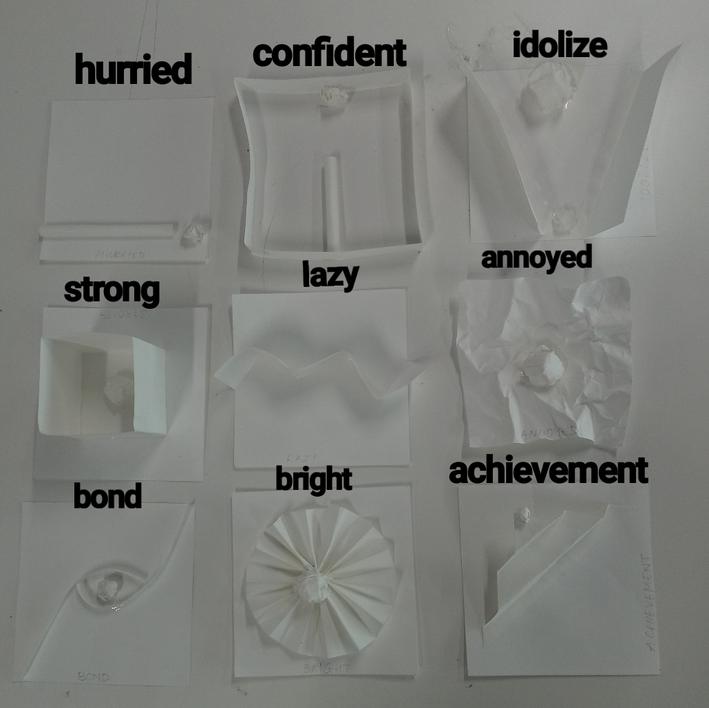 - Different intangible emotions were expressed through dots and lines of different sizes.