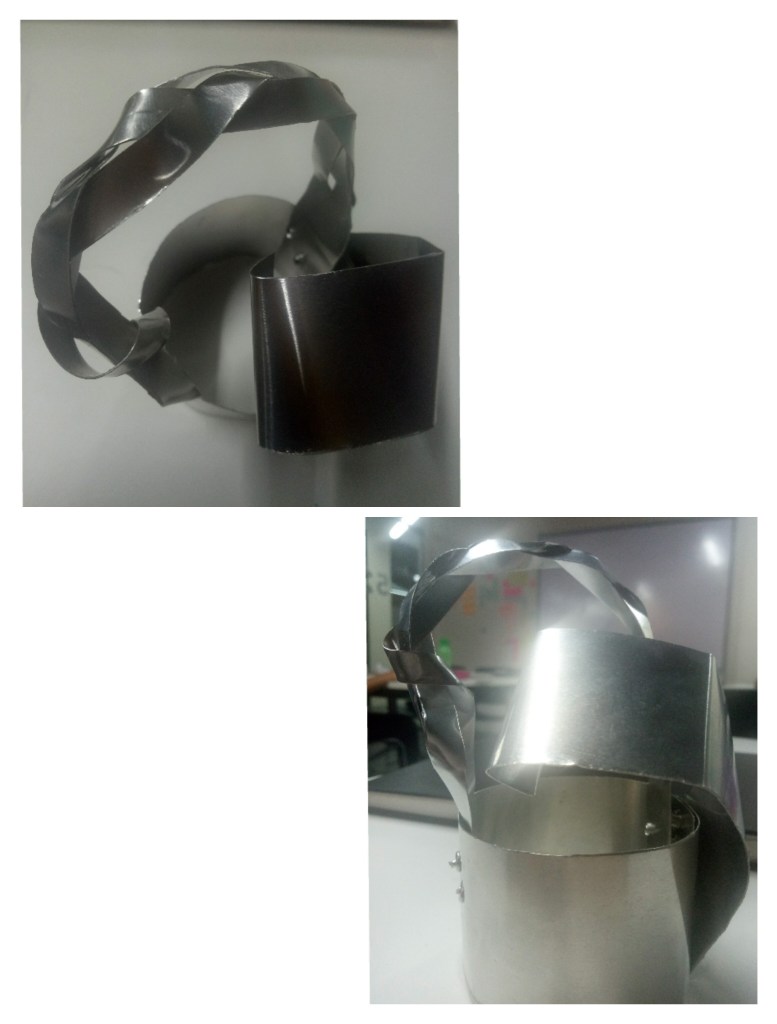 I showed the grip of the index finger and the thumb by plaiting three metal strips and fixing them on the circular strip.