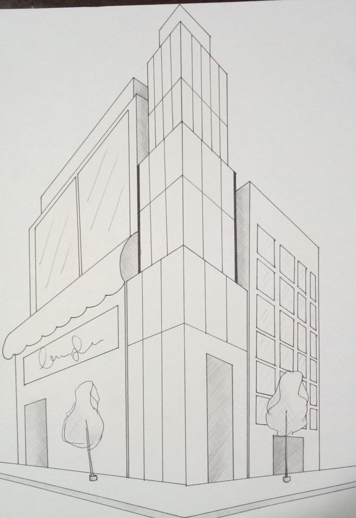 - 3-point perspective has 3 vanishing points i.e lines generate from 3 different points.