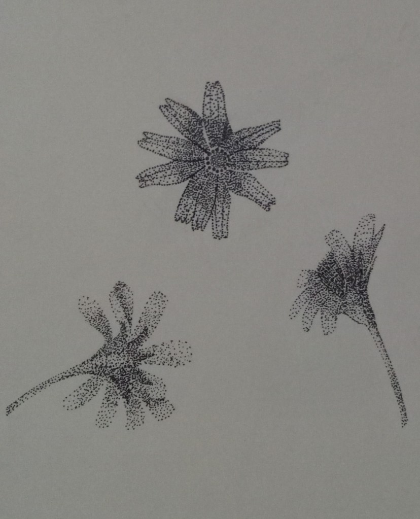 - I drew 1 flower and 2 leaves and filled them in with stippling, shading and hatching respectively.
