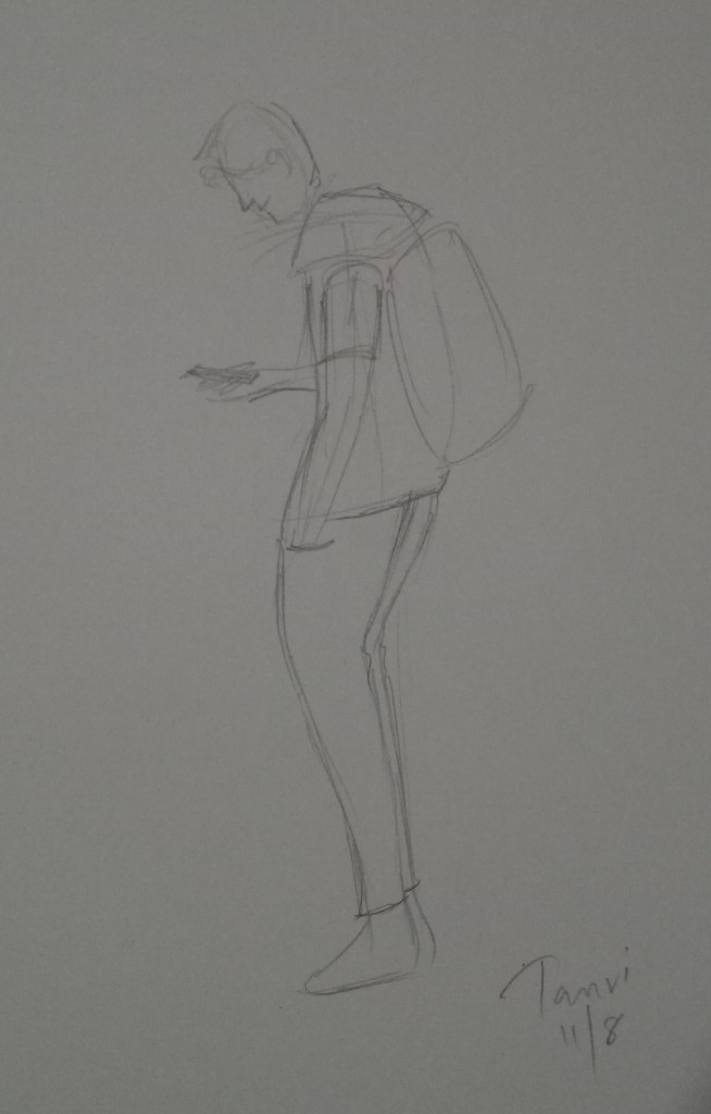- We did live sketching as everyone took turns posing for others. We were given only 5 minutes hence the sketch had to be fast and not very detailed.