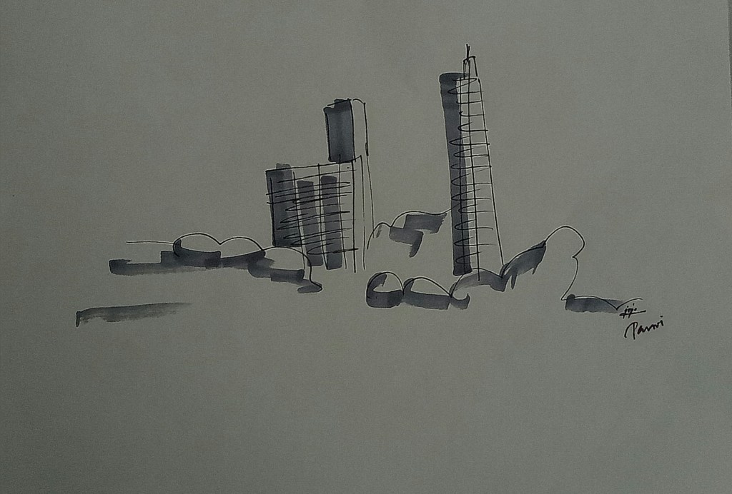 - I was to make the building and all the other elements in the simplest of ways. This was meant to be a quick sketch with undetailed details.