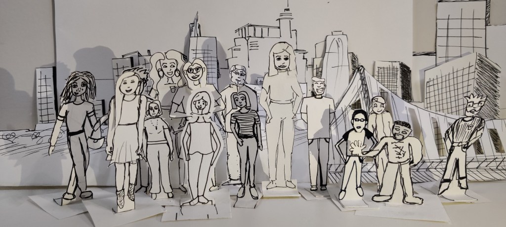 - This class I made a miniature mannequin of myself and also made a skyline.