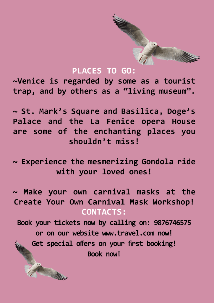 - For my leaflet I chose the city of Venice which is also known as The Floating City.