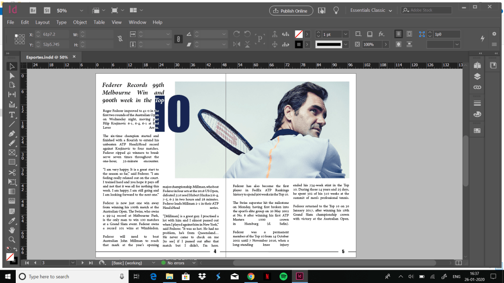 - I chose to do so with an article on my favourite tennis player : Roger Federer. I had so much fun making doing the layout for this magazine that I even decided to make a magazine cover to go along with it.
