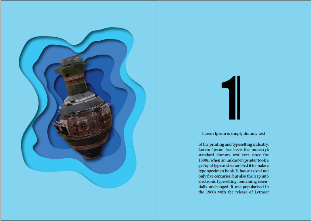 - While making the layout, I realized that I didn’t want to number my chapters. I, hence, replaced the numbers with symbols that represented the places these sculptures belonged to.